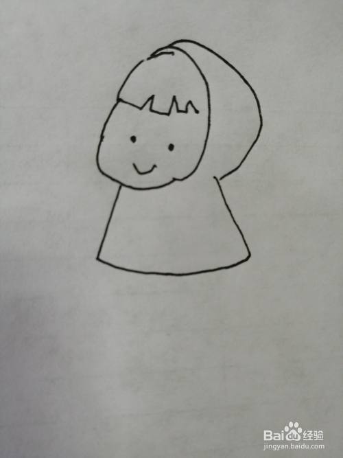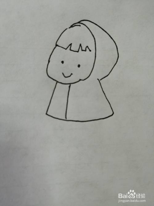 第二步,接着画出可爱的小孩的头部的雨衣部分。