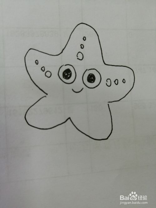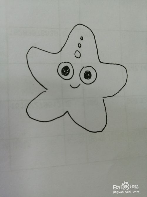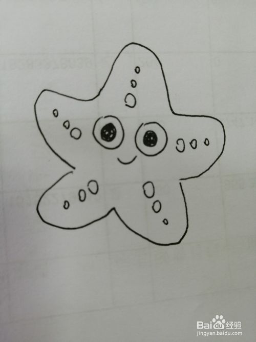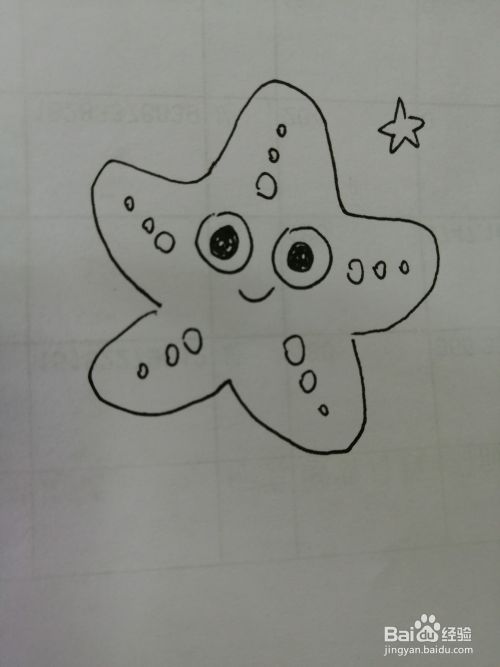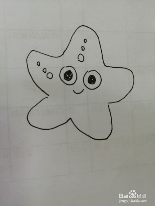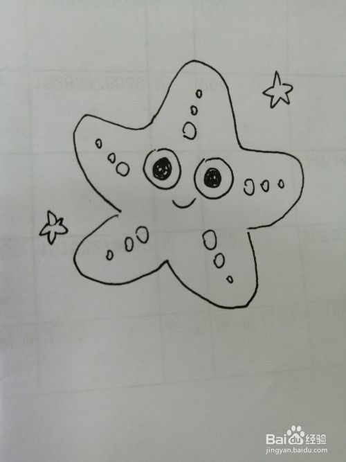 第七步,最后在可爱的小海星的五个角的右上和左下画出两个小星星。