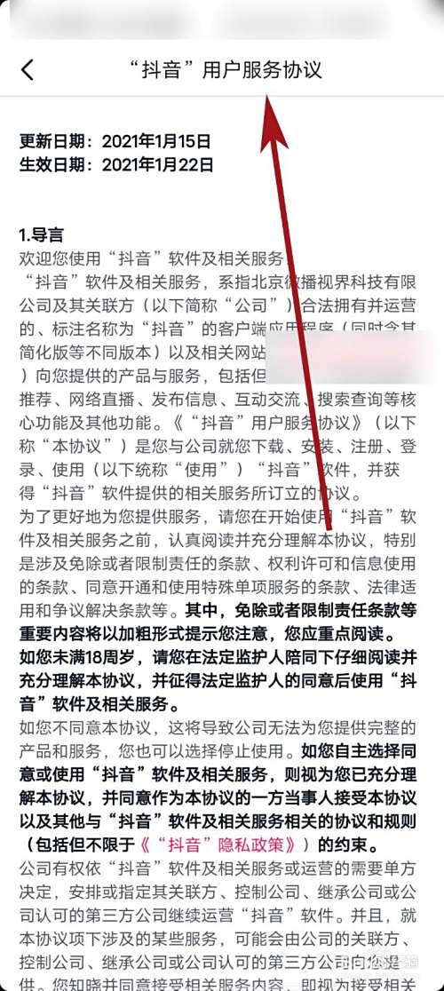 页面再次跳转后,我们就可以在这个页面中看到抖音app用户服务协议的全文内容了,希望能有所帮助