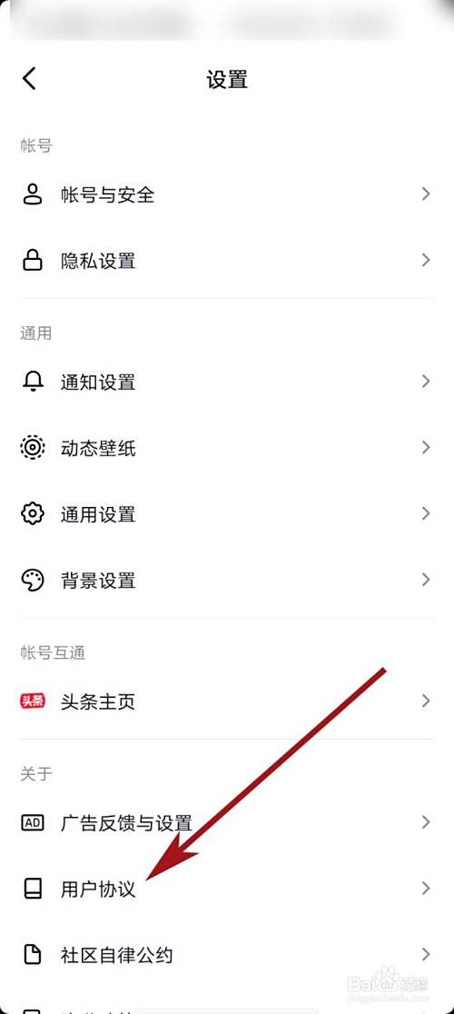 页面跳转后,我们点击箭头所指的“用户协议”选项