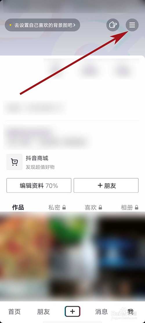 进入到“我”详情页面后,我们点击箭头所指的“三条横线”按钮