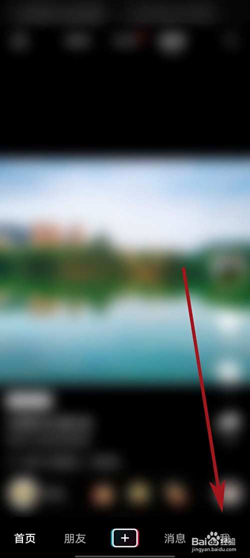 进入到抖音app首页,我们点击箭头所指的“我”按钮,进入下一页面进行操作