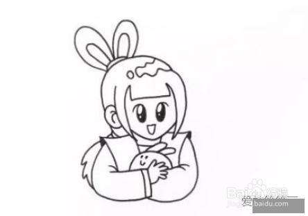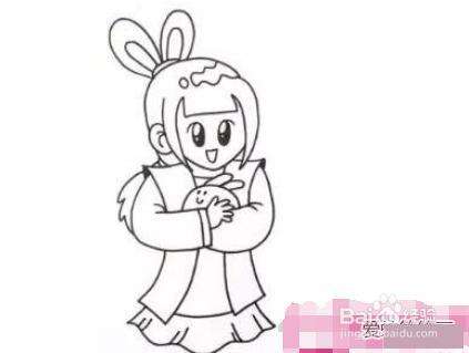 44再画出嫦娥怀里的玉兔,接着完成手臂的造型和动态。