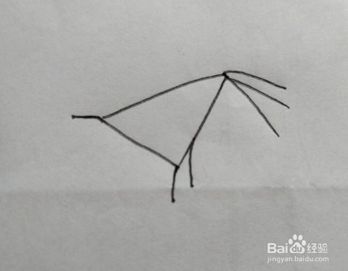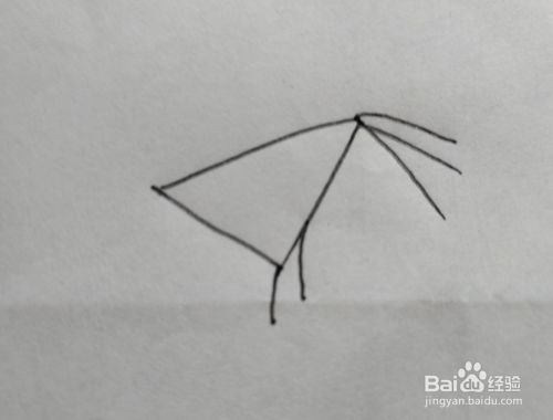 在三角形的左端,引出一条短线,作为公鸡的头部。