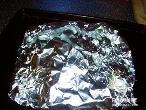6、然后我们在码放好的肉片上浇上一大勺豆瓣酱,再加少许水,使粉湿润,用锡纸把盘子口封好。