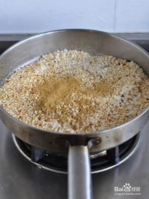 3、接着,取花椒、大米、紫米洗干净后沥干水。把锅加热后放入花椒、大米和紫米,用中火慢炒,直到大米变得微黄就行了。关火装碟备用。