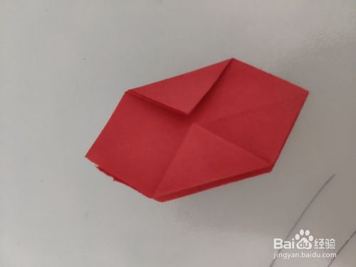花叶也必须选择绿色的纸,拿折花的小一号的正方形做绿色,大小正搭。将小一号的正方形对折,沿着对折线两边分别进行对折,整体对折就形成一片叶子。