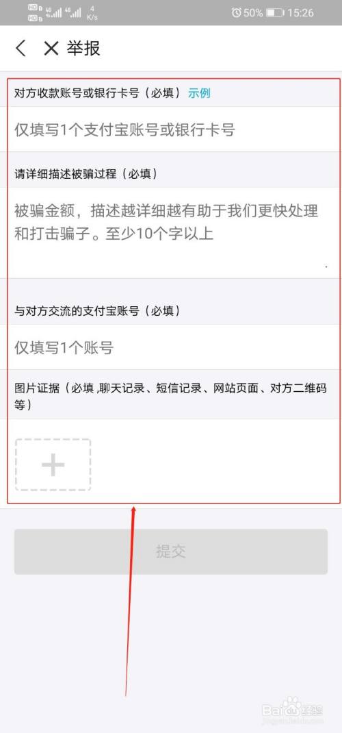 7、在最后,会有一个页面,需要填写对方的一些信息和过程描述;填写好,提交即可