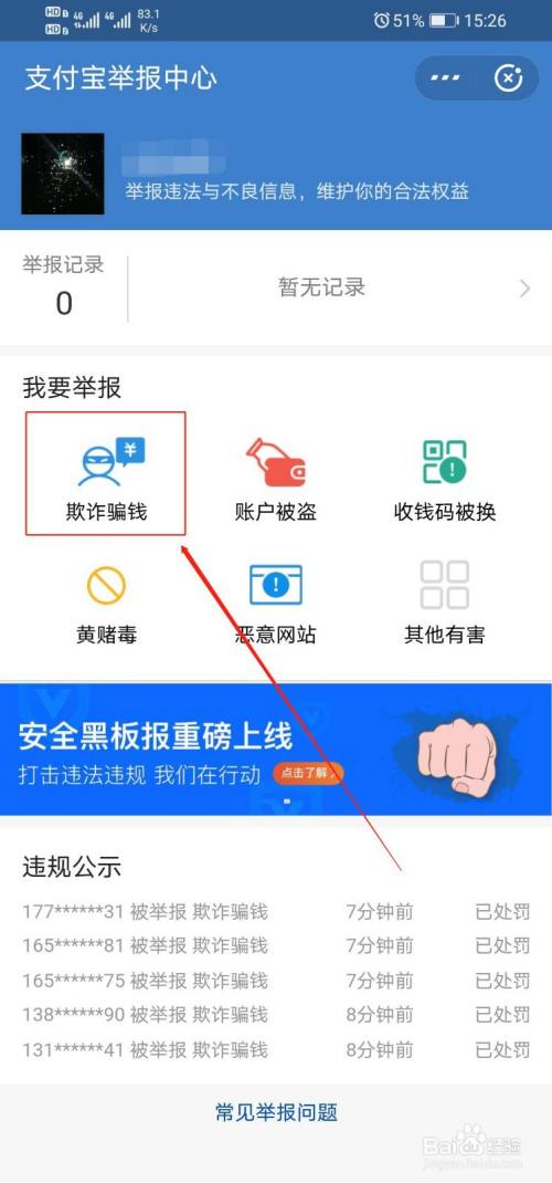 5、可以看到有一个“欺诈骗钱”选项,进入;再选择类型