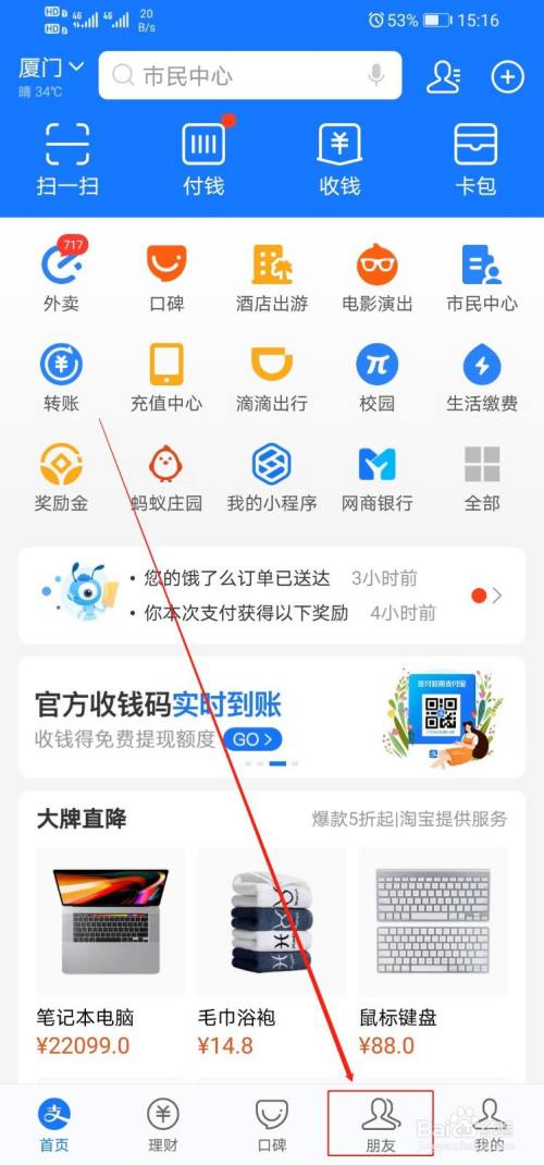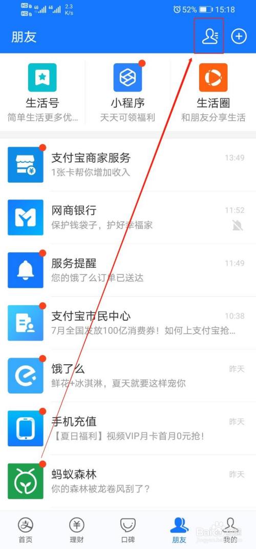 2、切换到底部“朋友”,再点击右上角的人头像;进入好友列表