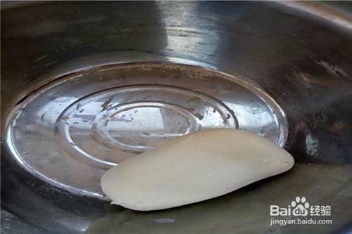 二、把准备好的白面放在盆里,倒水(把刚才化开的水一并倒进去),用筷子或者是直接用手和面,和起来没有干 面的时候,就开始揉,揉的表面光光的就可以了,放在一个热一点的地方,盖上盖子,发面。