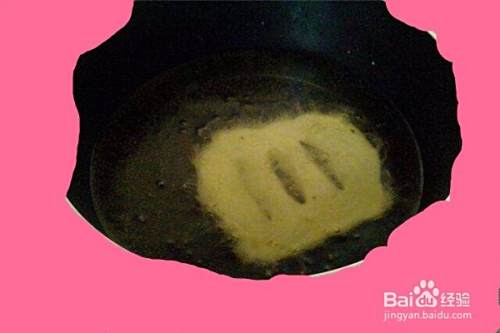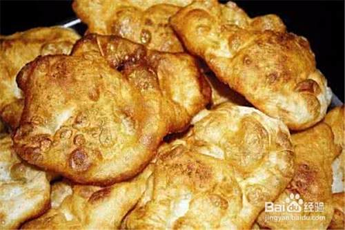 第八、一面炸红后、用筷子翻过来炸另一面,另一面炸红后就捞出来,放在盆里,这样全部炸完后,美味的油饼就做好了。