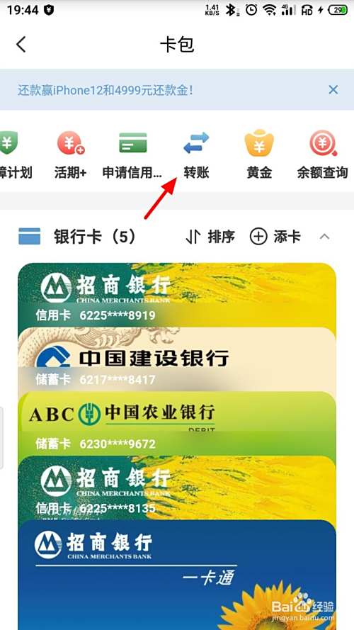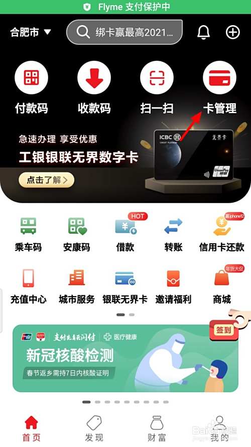 打开云闪付APP在首页页面,我们直接点击进入【卡管理】;