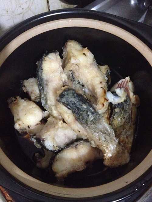 把煎好的鱼肉加入砂锅里,焖煮10分钟。