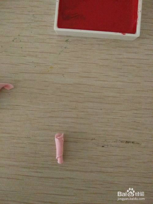 取一团白色粘土蘸上一些红色颜料,调和均匀,也可以直接用红色粘土代替