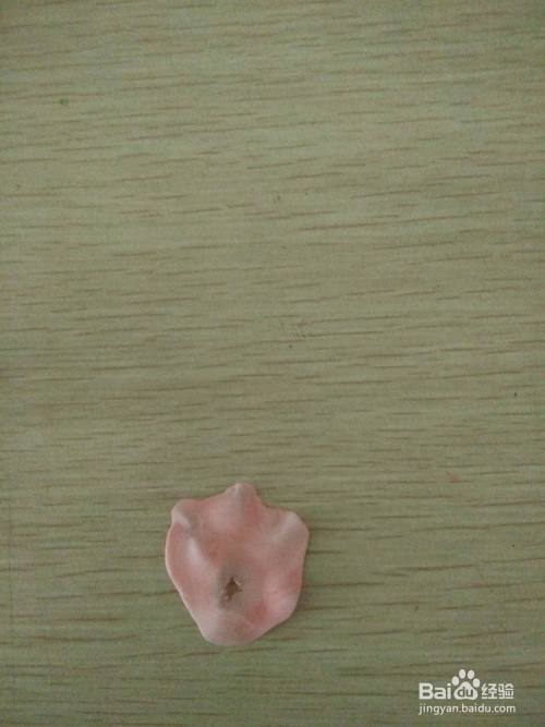 压薄的粘土要注意会破,所以在压制时要小心一点,黏在一起的部位可以厚一点,压好后的粘土用手捏出花瓣的形状
