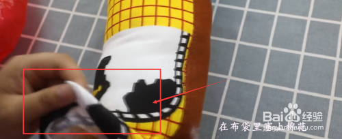 第三步,往枕头里面塞入棉花,塞满即可