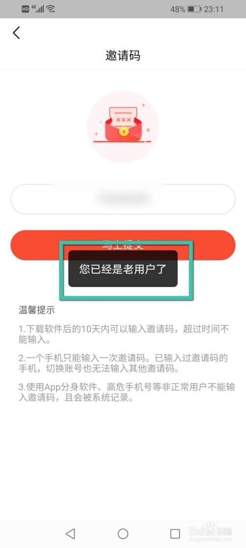 如果下载软件10天内没有输入邀请码的话,就不可以填写了。
