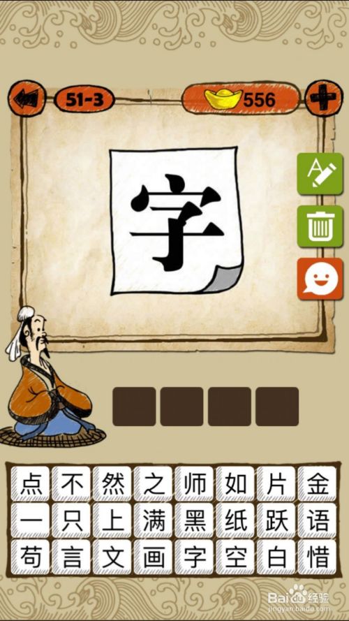 成语玩命猜第51-3关,如下图,白纸上面写着一个黑色的字,答案白纸黑字。