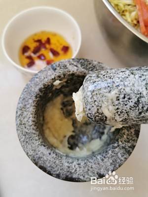 特别说一下这两个调料,蒜泥,可以说是北方凉菜的灵魂。我们吃凉菜一定会加,当然不喜欢的可以不加。熟的菜籽油,加了点辣椒段,不辣为了更好看。我觉得放熟油更好吃,不放油单纯放调料,味道很寡淡。也可以放熟的花生油,或者别的植物油。