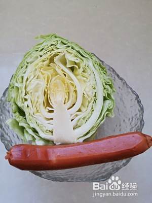 食材超级简单,甘蓝半个,蒜蓉肠一根。