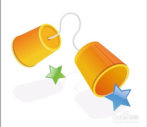 用绿色的渐变填充小一点的左侧星星,亮区用半透明的白色填充。用蓝色的渐变填充大一点的右侧星星,亮区用半透明的白色填充。