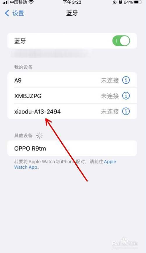 最后,在手机上打开蓝牙设置,找到小度音响并进行蓝牙连接即可