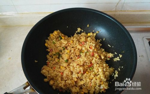 将米饭与咖喱食材翻炒均匀,炒至米饭吸收了咖喱汁即可。