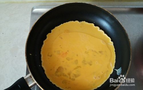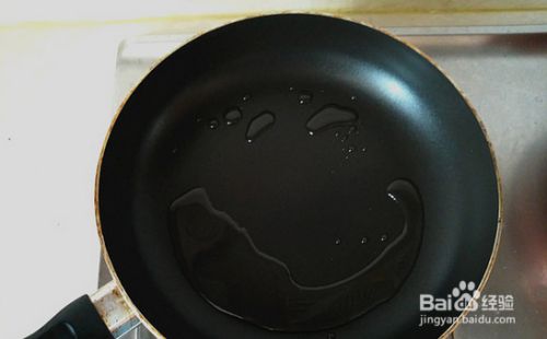 不粘锅里放入适量的油,油的量稍微比平时煎鸡蛋的油要多一些。