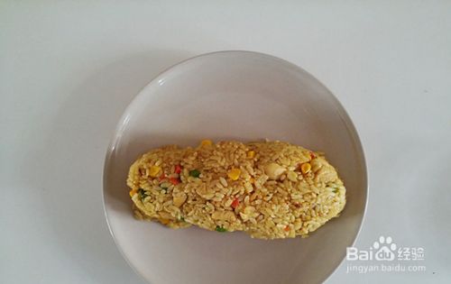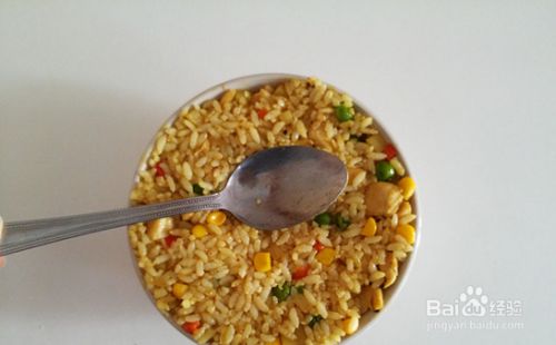 炒香后放入少许的青豆,加1汤匙的水翻炒直到熟了即可盛出碗里。