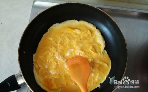 迅速的用筷子或刮刀把鸡蛋翻炒及捣烂。