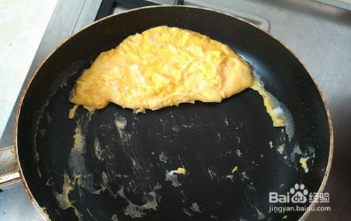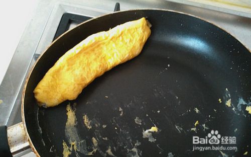 把两边的蛋液翻到鸡蛋的中心里,这个动作要很快不然鸡蛋会过熟,这样切出来的鸡蛋就不出汁了。