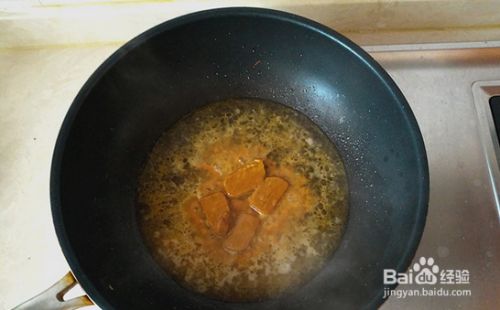锅子里放入适量的油,放入洋葱炒香至金黄色。