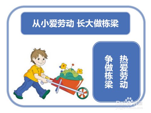 第五步,画报中画上边框,把“从小爱劳动 长大做栋梁 ”的画报装饰一下。