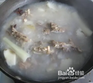 20分钟以后把排骨捞出来放入砂锅中,再倒入汤汁,放入山药,开小火继续炖煮20分钟。