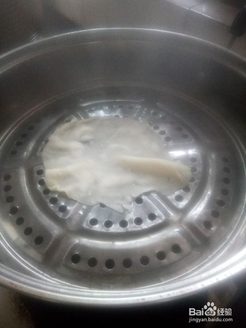 蒸锅加水烧开,放上蒸格,在蒸格上刷油,避免沾黏,将面皮胚子放上去,大火蒸五分钟。