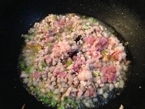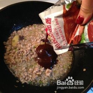 然后倒入甜面酱,均匀炒到肉肉都裹上酱