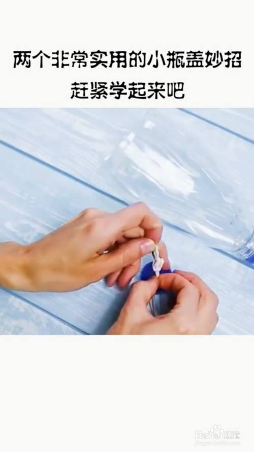 用工具将瓶盖戳出一个洞,然后穿入一根麻线,在内侧打个结。