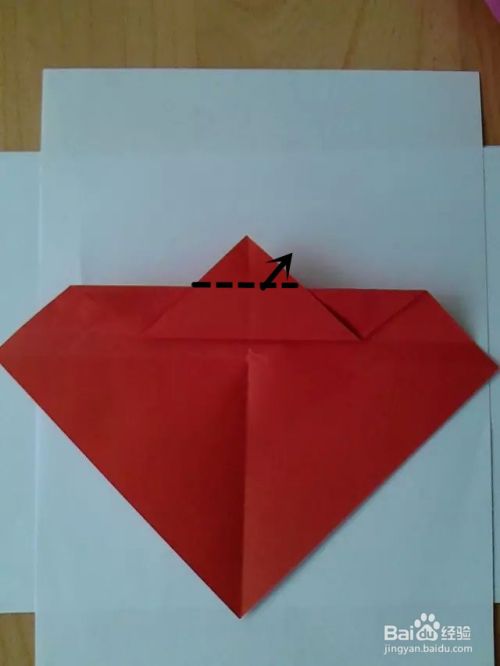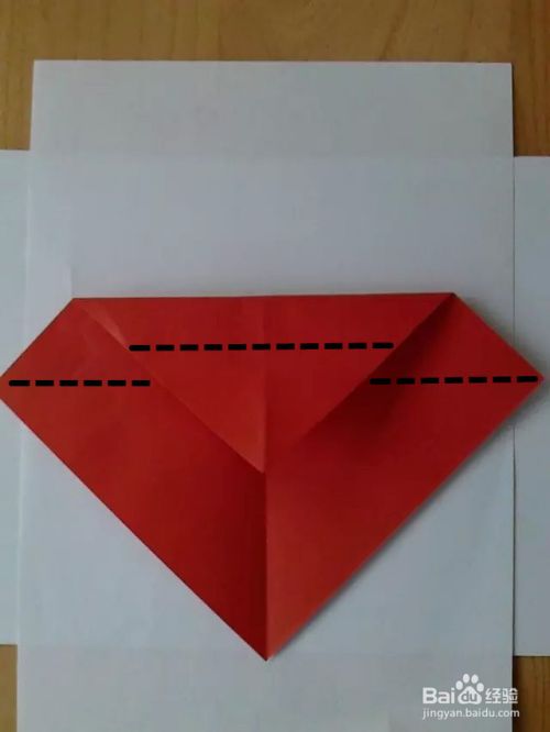 折下的角再向上折,折线在这个角的三分之一处,再把小角折下如图: