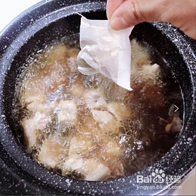 羊肉小火焖煮20分钟手,放入料酒、蚝油、生抽、花椒粒,一包炖肉包、葱姜,之后再继续炖煮一会。