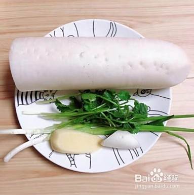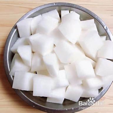 白萝卜切块待用,配菜切碎待用。