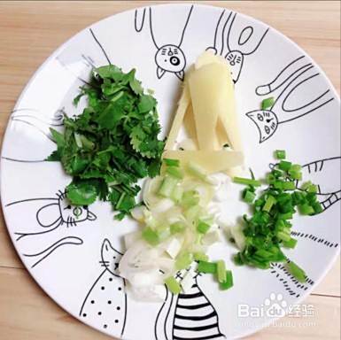 煮羊肉的同时,可以开始准备蔬菜、白萝卜、葱姜、香菜。