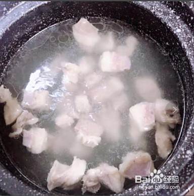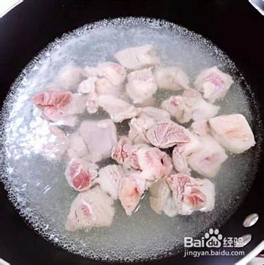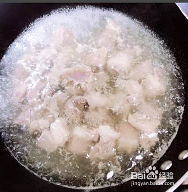 锅中水烧开后放入羊肉煮一下。