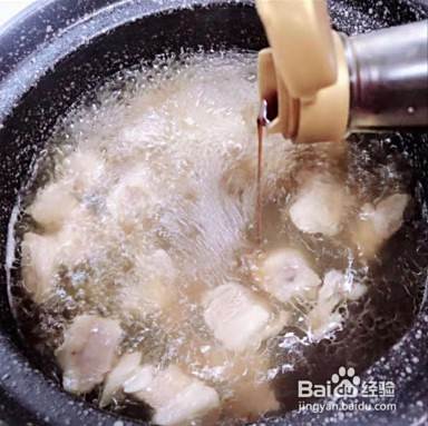 放入料酒、米醋、除羊膻味。