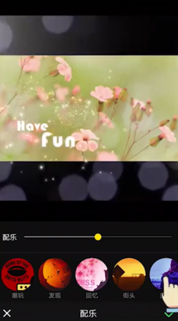 点击“声音”,选择“配乐”,添加一首喜欢的音乐,点击确定。