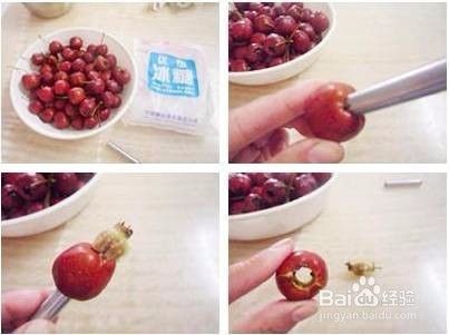 1、将红果洗净,用钢笔帽从红果的一头旋转着用力拧一下,然后拔出。