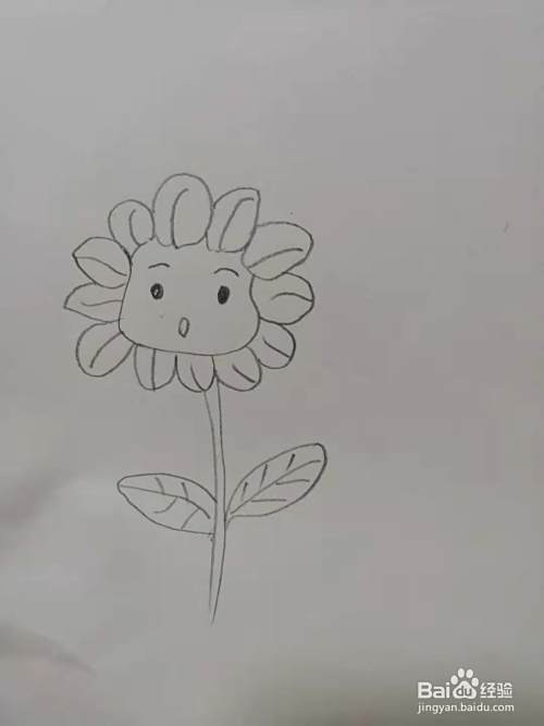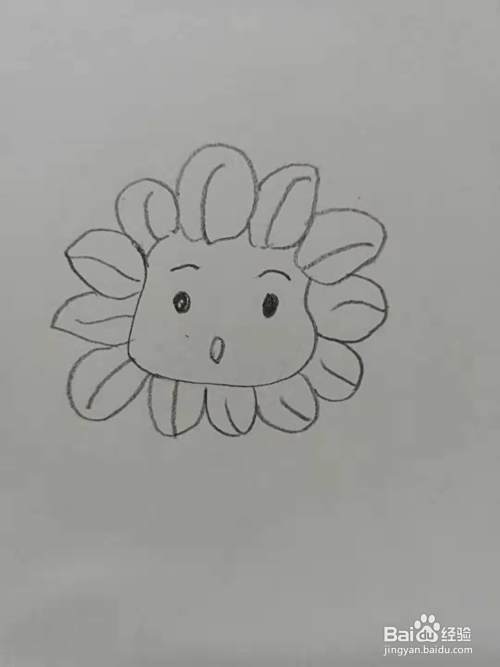 给向日葵姑娘画上眉毛、眼睛、嘴巴。