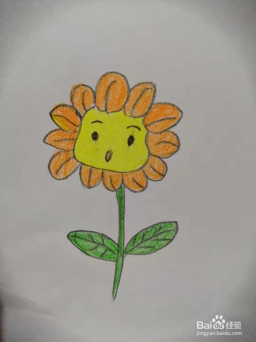最后用彩铅给向日葵涂上颜色,并用黑色彩铅描边,这样向日葵姑娘的简笔画就完成了。