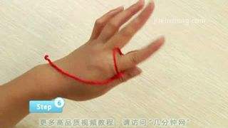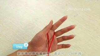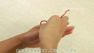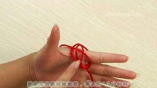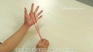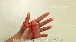 33、将大拇指上的圈的交叉点捏住,取下,压在另一个圈靠里面的那根绳上。