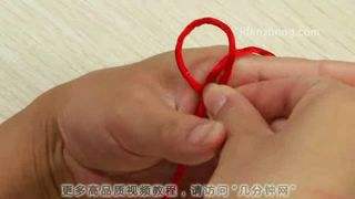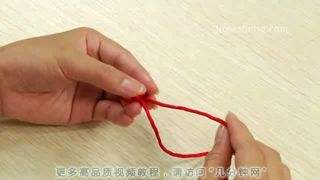 55、稍微整理一下,将绳拉紧,使这个形状看起来像个8字